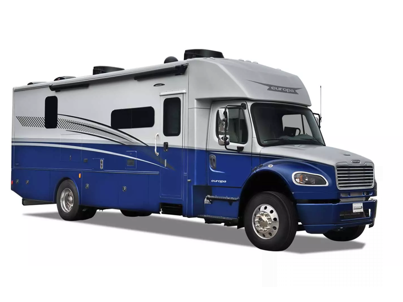 Experience the power and strength behind the Europa Super C diesel motorhome by Dynamax. The impressive Cummins B 6.7L turbo diesel engine sits upon a durable Freightliner M2 106B Plus chassis, along with an Allison 3200 TRV six-speed automatic transmission and a 12,000 trailer hitch to bring the family car along.