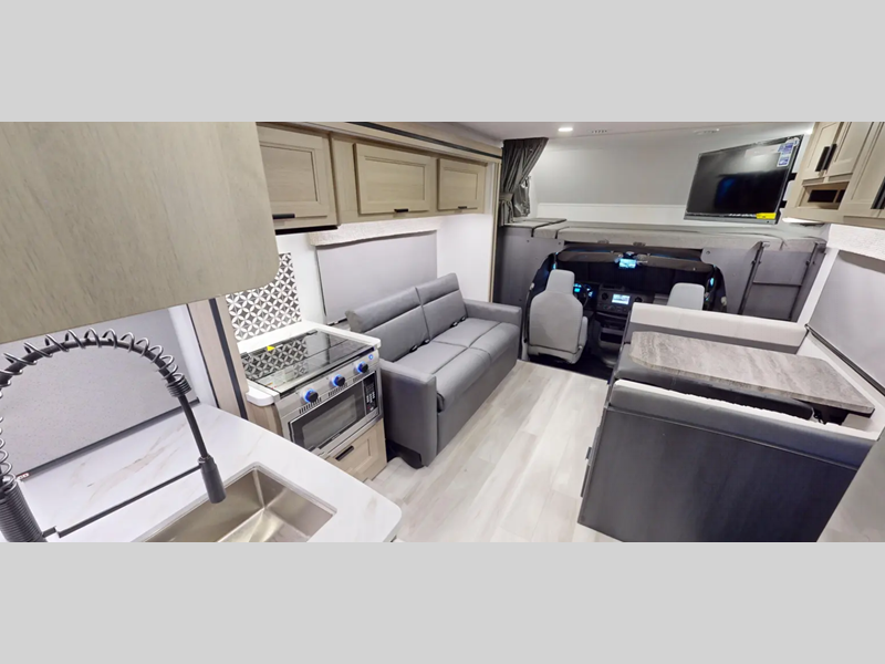 Sleeps 5 Slides 1 Length 23 ft 10 in Ext Width 8 ft 5 in Ext Height 11 ft 3 in Hitch Weight 5000 lbs GVWR 12500 lbs Fresh Water Capacity 35 gals Grey Water Capacity 32 gals Black Water Capacity 27 gals Furnace BTU 30000 btu Generator 4.5KW Gas Fuel Type Gas Chassis Ford E350 Fuel Capacity 55 gals Wheelbase 158 in Number Of Bunks 1 Available Beds Queen Refrigerator Type 12V Refrigerator Size 10.7 cu ft Cooktop Burners 3 Shower Size 24" x 32" Number of Awnings 1 Axle Weight Front 5000 lbs Axle Weight Rear 8500 lbs LP Tank Capacity 41 lbs Water Heater Capacity 6 gal Water Heater Type DSI Gas/Electric AC BTU 13500 btu TV Info LR 12V LED Awning Info 14' Power w/ LED Light Strip Gross Combined Weight 18000 lbs Shower Type Standard Electrical Service 30 amp Similar Floorplans