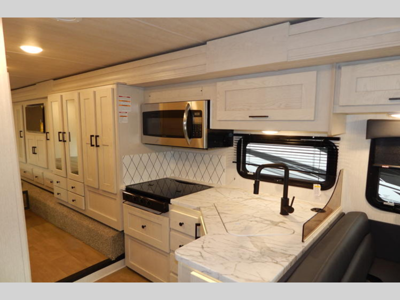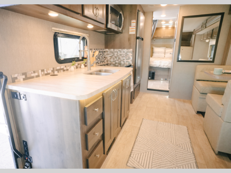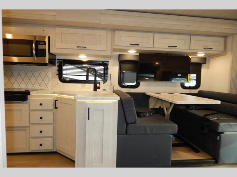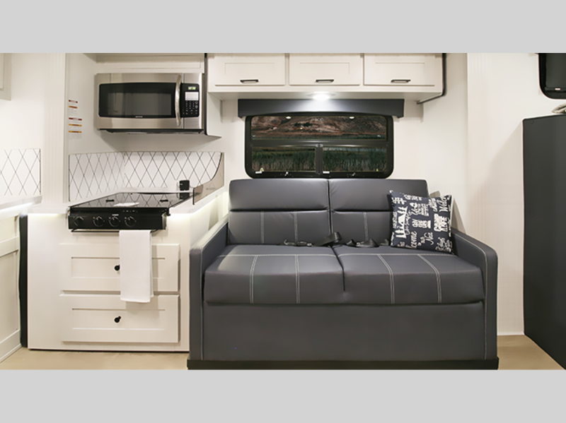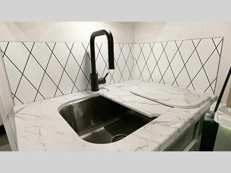 Extend your trips with a peace of mind thanks to the heated tanks and galvanized bays with crack resistance in extreme weather. The walk on fiberglass roof is damage resistant and the residential HVAC is serviceable and mold/mildew resistant. Hardwood cabinetry, accent lighting, upgraded flooring, and a stainless steel sink in the kitchen are just a few of the well-appointed design features you will find throughout!