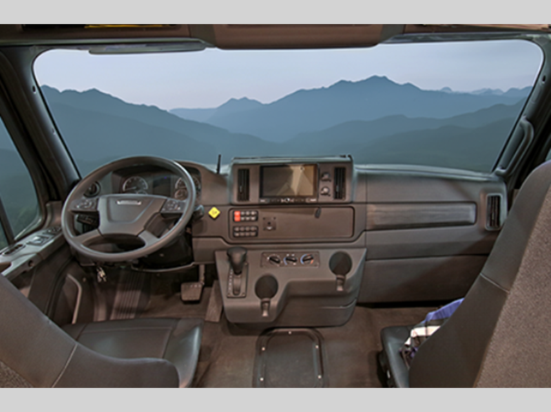 Sleeps 7 Slides 1 Length 31 ft 6 in Ext Width 8 ft 5 in Ext Height 12 ft 10 in Int Height 7 ft 2 in Exterior Color Noir, Ice, Guiness Hitch Weight 10000 lbs GVWR 24000 lbs Fresh Water Capacity 85 gals Grey Water Capacity 50 gals Black Water Capacity 50 gals Tire Size 22.5" Furnace BTU 30000 btu Generator 6.0 Diesel 6,000W Fuel Type Diesel Engine Cummins 6.7L Chassis Freightliner S2 RV Horsepower 340 hp Fuel Capacity 60 gals Wheelbase 230 in Number Of Bunks 1 Available Beds Queen Torque 700 ft-lb Refrigerator Type 12V Refrigerator Size 10 cu ft Cooktop Burners 3 Number of Awnings 1 LP Tank Capacity 12.2 gals Water Heater Type On Demand AC BTU 28500 btu TV Info LR Flat Screen TV, BR TV Awning Info Electric with LED Lights Gross Combined Weight 33000 lbs Shower Type Standard Electrical Service 50 amp Similar Floorplans