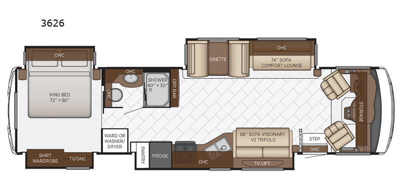 - The booth dinette offers a comfortable spot to enjoy meals, and the TV lift allows the kids to enjoy their favorite shows while you relax.